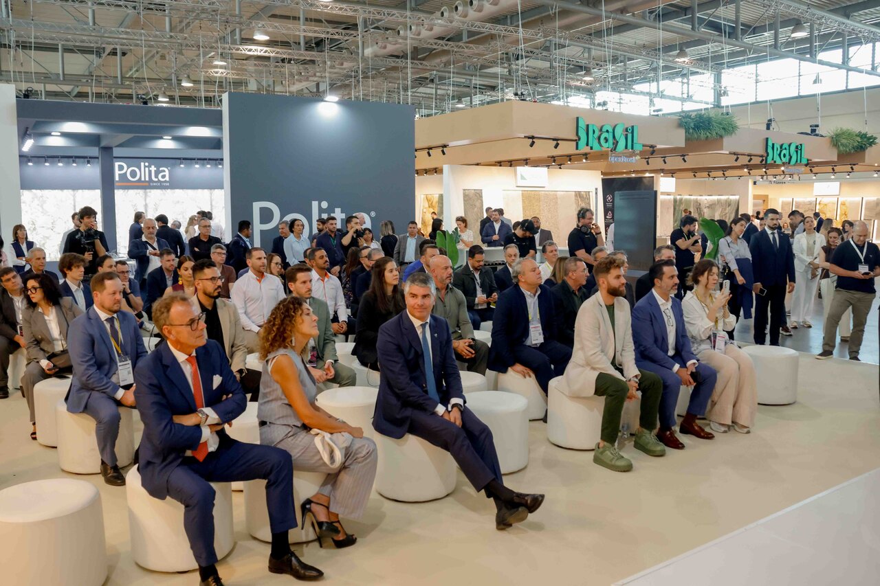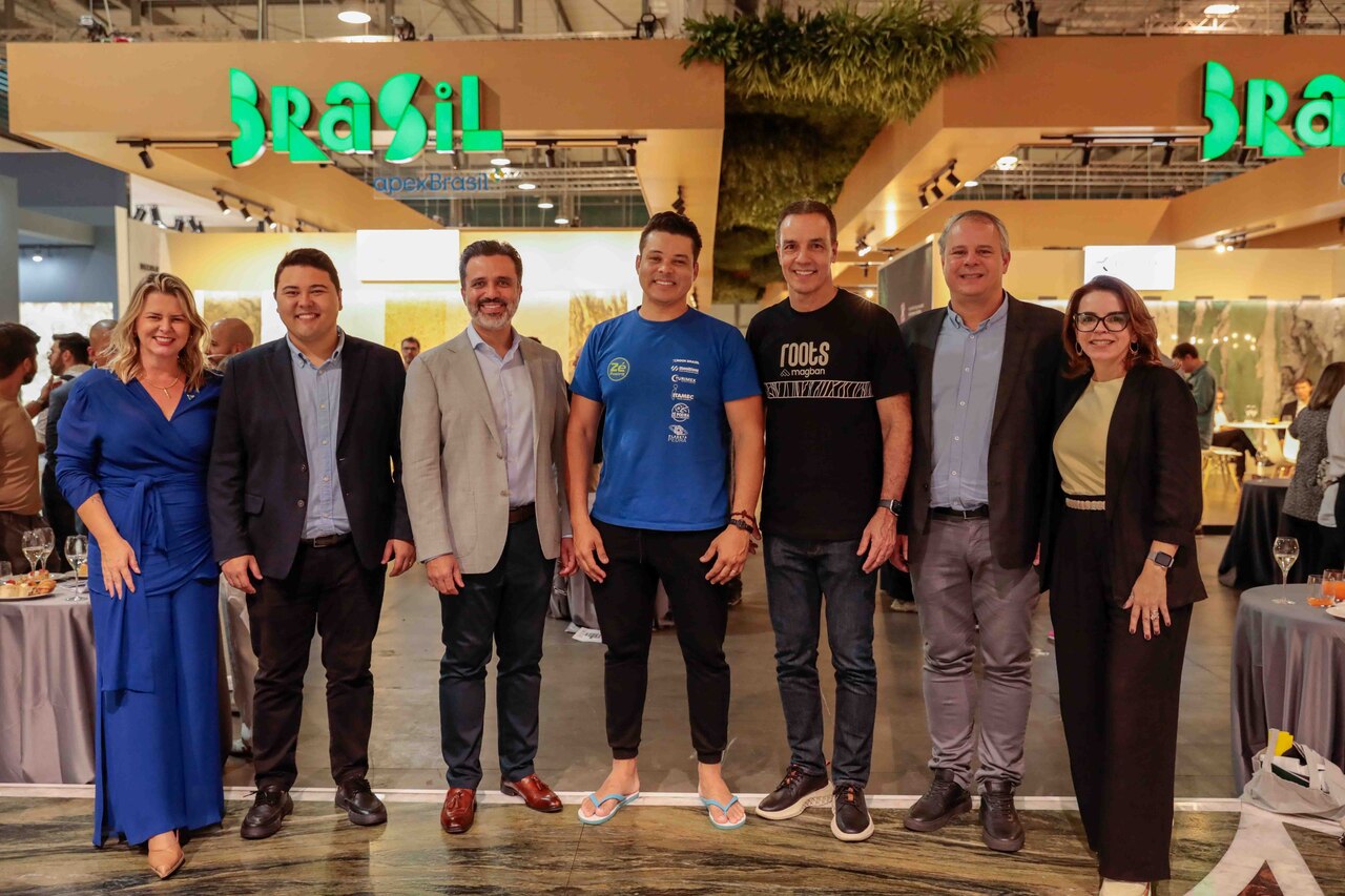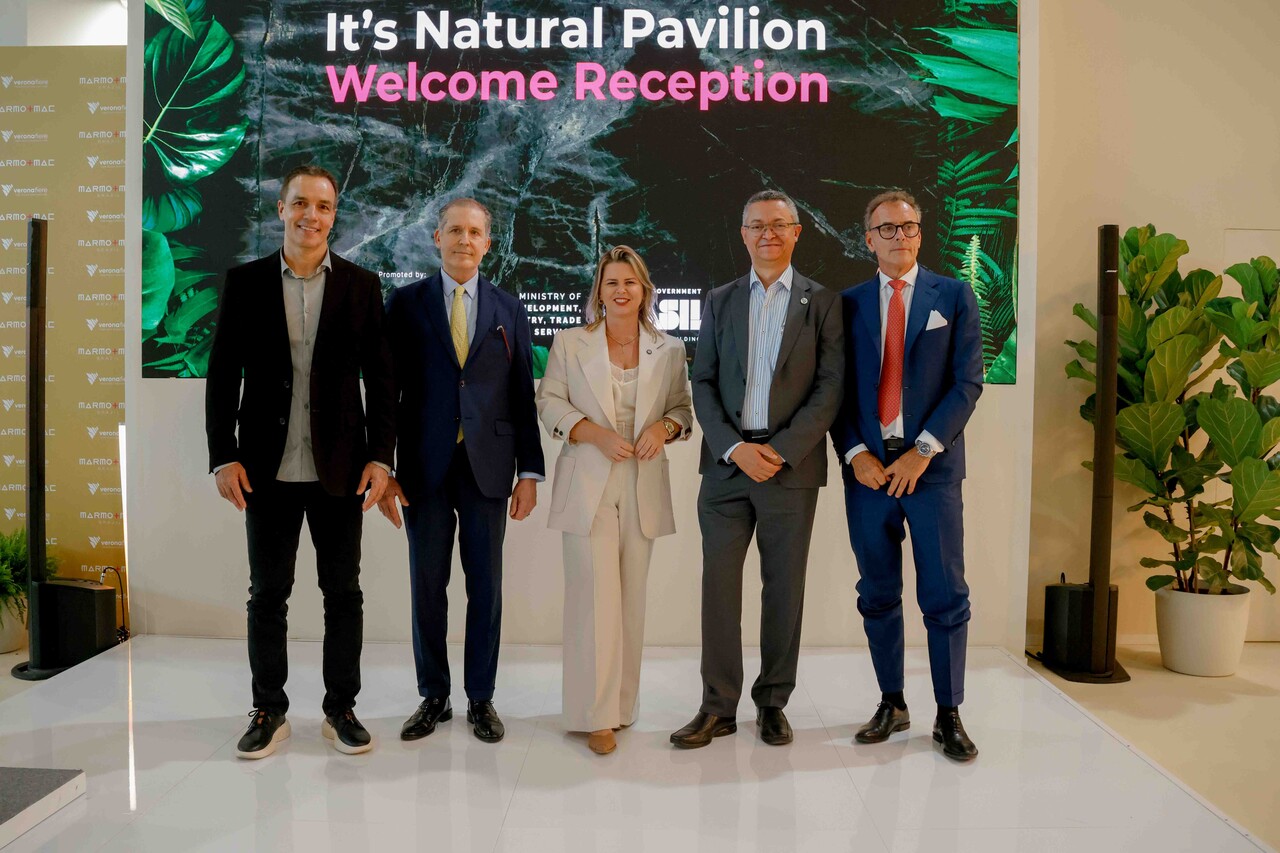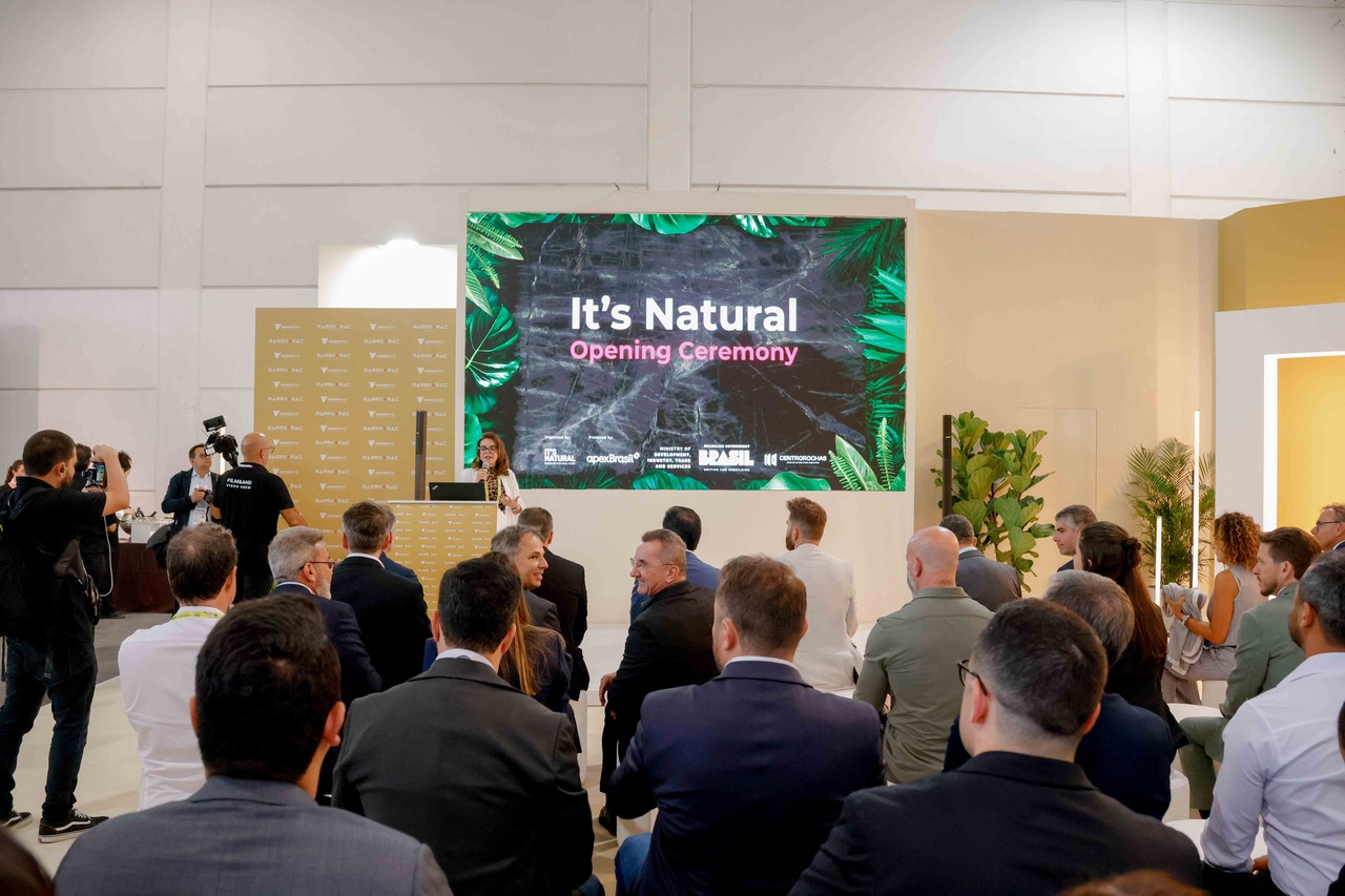 A abertura oficial do Espaço It’s Natural, realizada no primeiro dia da feira, contou com a presença de Hadil da Rocha Vianna, embaixador do Brasil em Milão; Paulo Silva, coordenador de Indústria e Serviços da ApexBrasil; Federico Bricolo, CEO da VeronaFiere, e Flávia Milaneze, CEO da Milanez & Milaneze, empresa do Grupo VeronaFiere no Brasil, Giovanni Francischetto, superintendente da Centrorochas, e Thiago Fukuda, gerente do projeto setorial conduzido pela associação em parceria com a ApexBrasil. Todos reforçaram o significado histórico dessa conquista e o impacto positivo que ela representa para a imagem do Brasil no setor global.