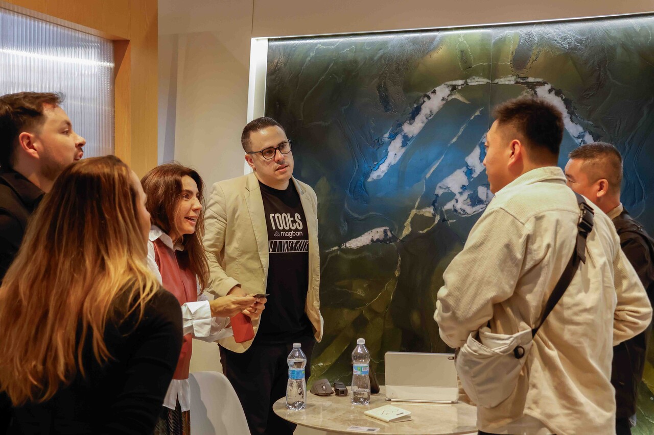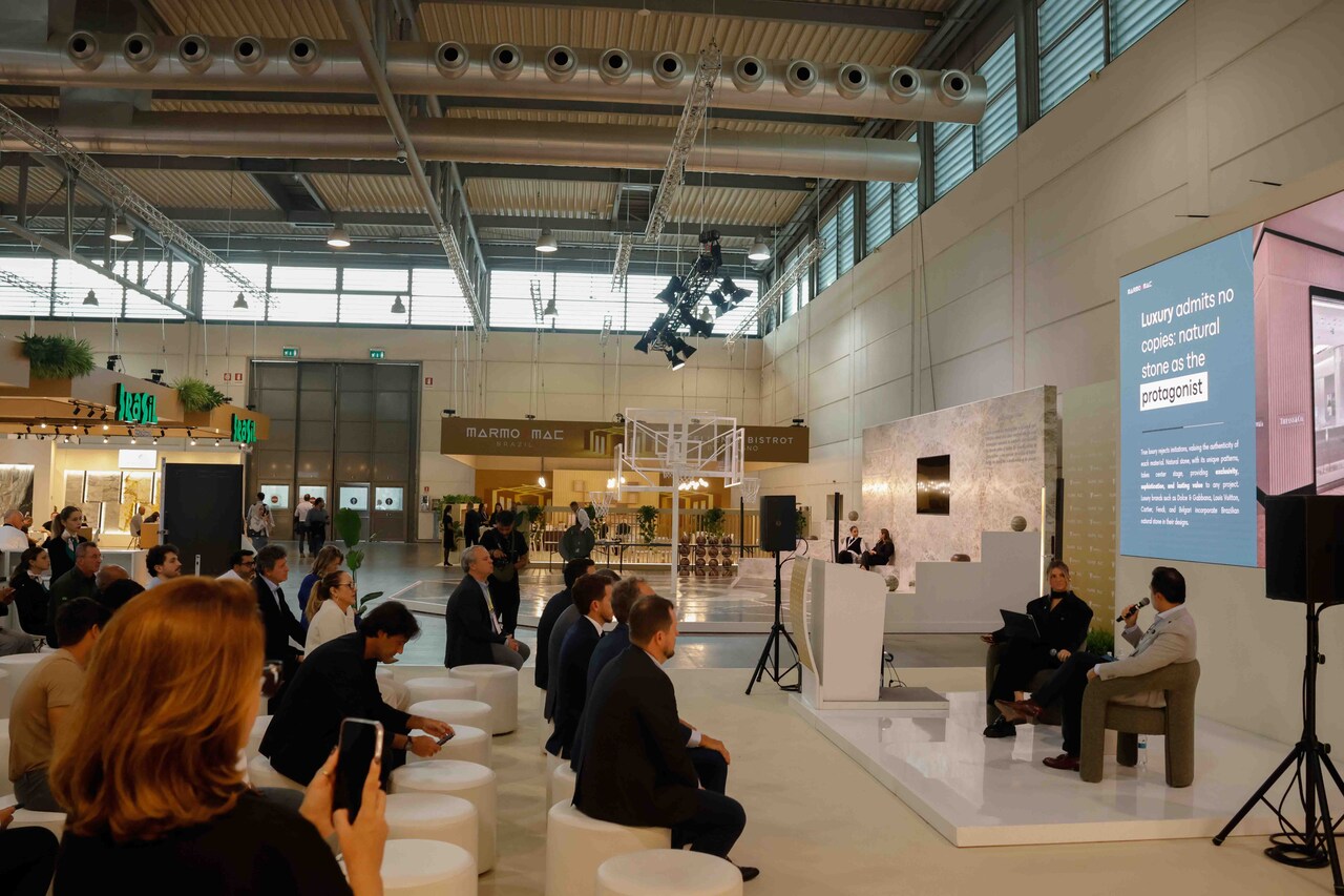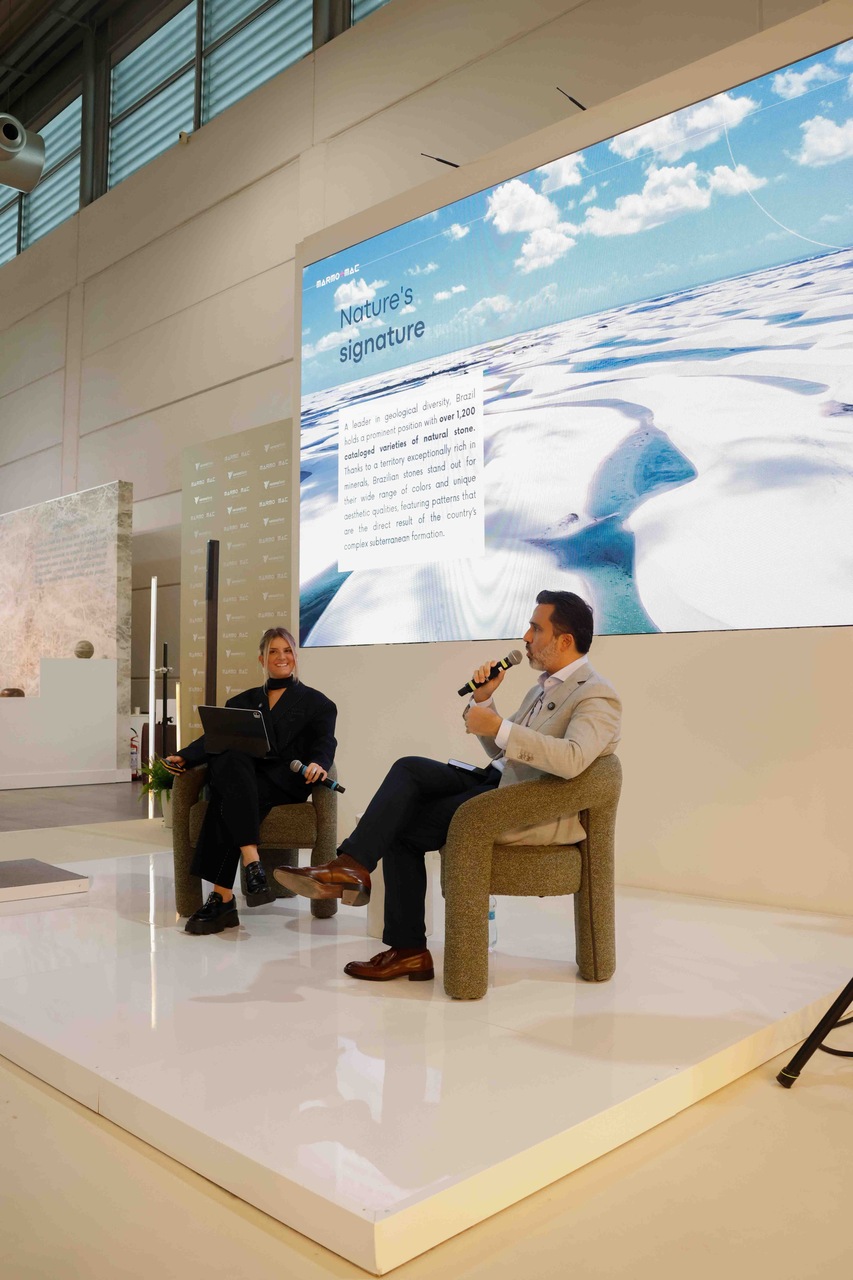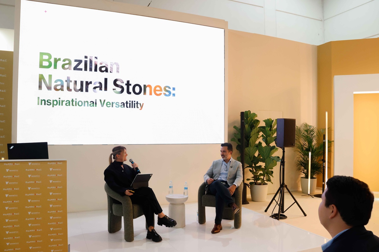 E foi neste espaço que arquitetos e designers de diversas nacionalidades tiveram a oportunidade de acompanhar o talk “Brazilian Natural Stones: Inspirational Versatility”, com Fábio Cruz, vice-presidente da Centrorochas, e Amanda Ferber, fundadora da Architecture Hunter. O momento teve transmissão simultânea para a Archi-Hunters Community, plataforma que conecta mais de 17 mil profissionais de arquitetura e design em vários países.